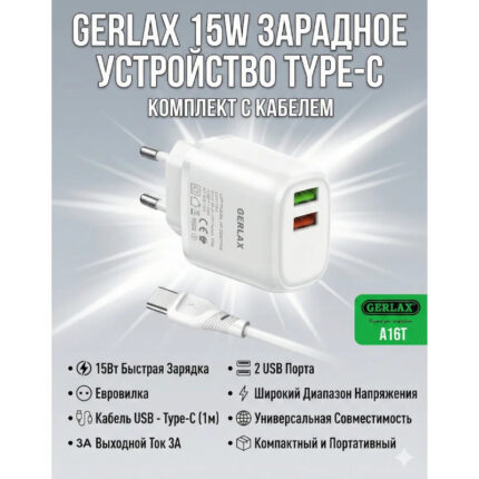Зарядное устройство GERLAX GA-40, 2USB-C, 40W 6А, голова