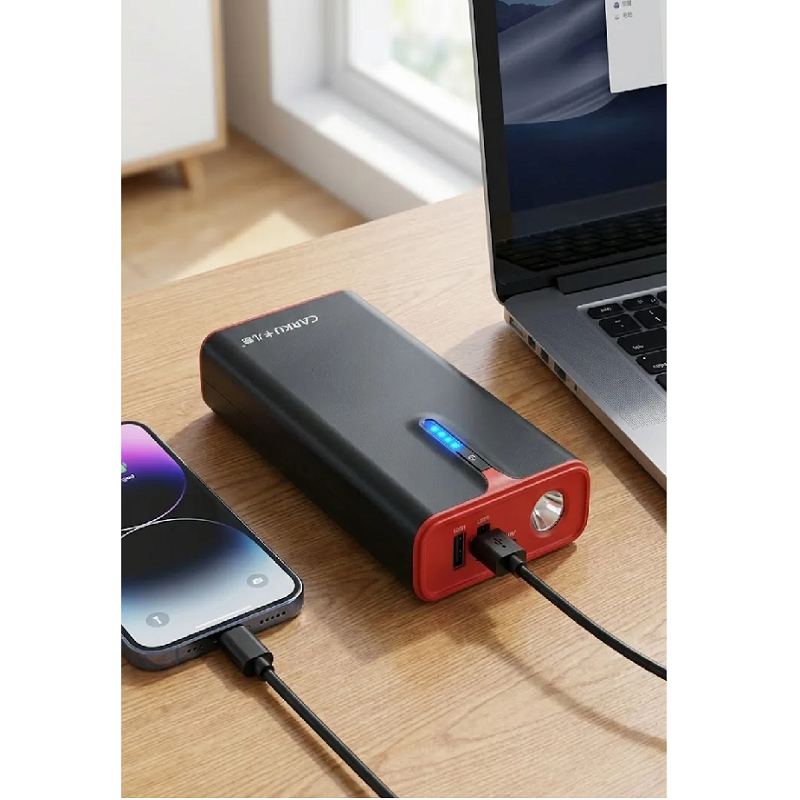 Carku K10 — компактное и мощное пуско-зарядное устройство для автомобиля. Помогает запустить двигатель при полностью разряженном аккумуляторе и служит полноценным power bank для зарядки гаджетов в дороге.