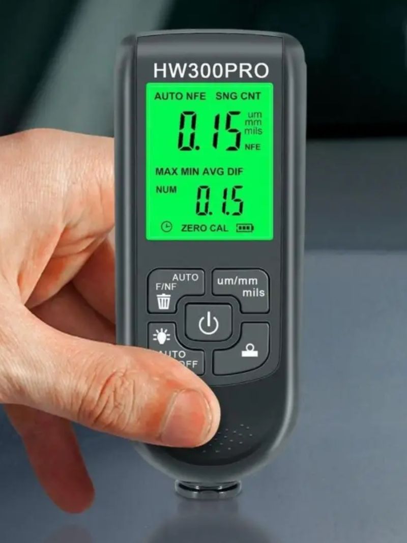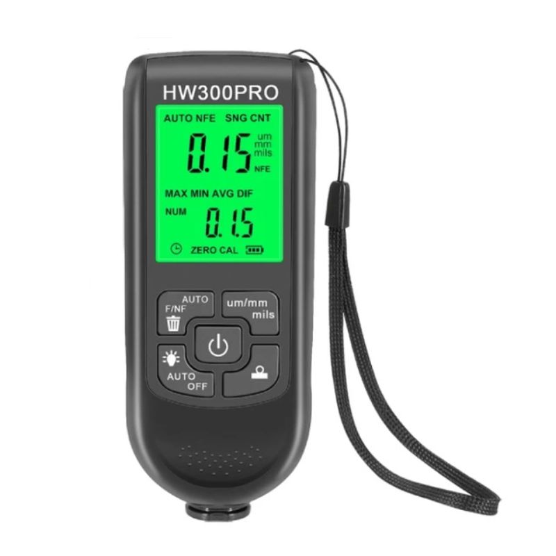 Толщиномер HW300PRO, железо, сталь, алюминий. Толщиномер подойдет для измерений на двух типах металлических поверхностей из железа и цветных металлов, таких как алюминий, т.к. прибор работает по магнитному и вихревому принципу. HW300PRO позволит самостоятельно подобрать автомобиль в оригинальном заводском окрасе, поможет выявить ремонт, перекрас, шпаклевку и не даст себя обмануть при автоподборе. Толщиномер используется для измерения толщины покрытий на металле, таких как краска/эмаль/хром на стали, краска и анодированные покрытия на алюминии/меди с автоматическим определением типа металла.