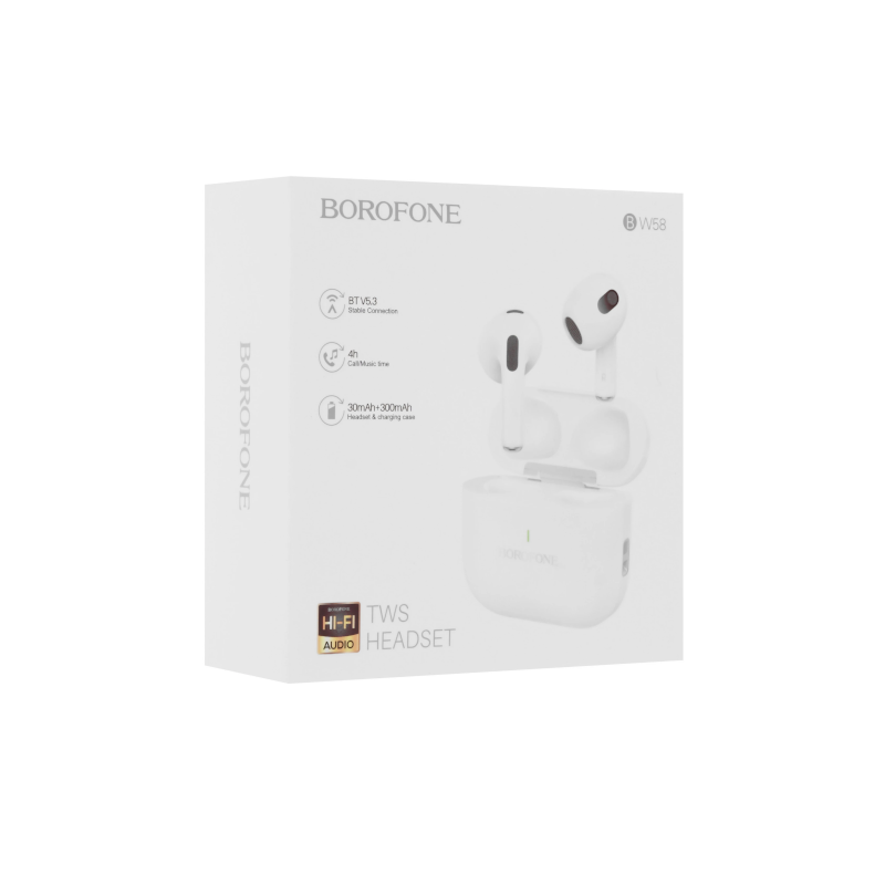 Беспроводные наушники BOROFONE BW58 — это компактная TWS-гарнитура в формате вкладышей с поддержкой Bluetooth 5.3. Подходят для повседневного использования: музыка, звонки, работа со смартфоном.