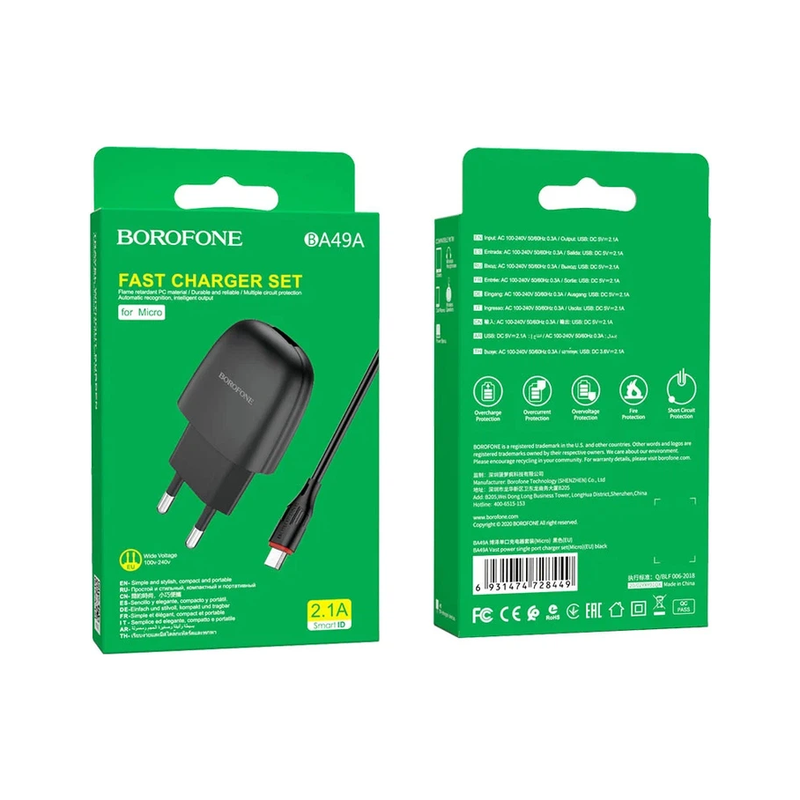 Сетевое зарядное устройство BOROFONE BA49A — компактный адаптер для повседневной зарядки мобильных устройств. Оснащён одним USB-портом и обеспечивает стабильный выходной ток до 2.1А, что подходит для смартфонов, наушников и других гаджетов.
