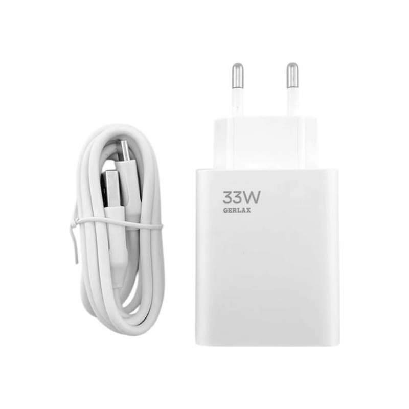 Сетевое зарядное устройство GERLAX A14 — адаптер с поддержкой быстрой зарядки мощностью до 33 Вт. Оснащён USB-портом и комплектуется кабелем USB → Type-C, что делает его готовым решением для зарядки смартфонов и других устройств.