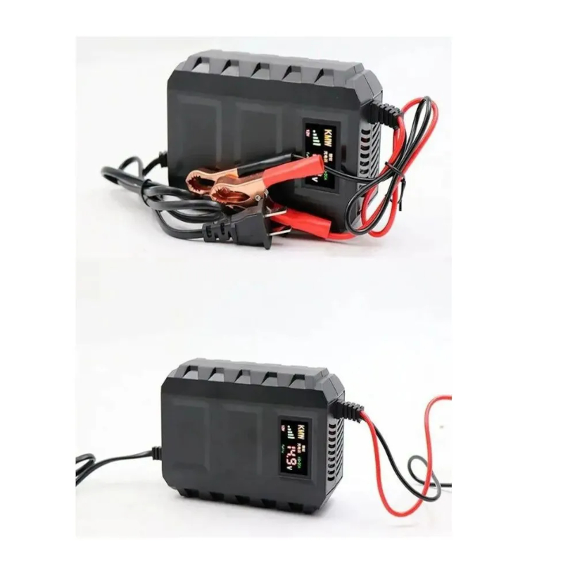 Устройство работает в автоматическом режиме с контролем параметров зарядки, что обеспечивает безопасный процесс и защиту аккумулятора. Оснащено дисплеем, системой охлаждения и крокодилами для удобного подключения.