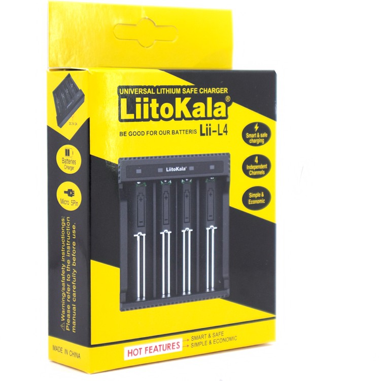 Зарядное устройство LiitoKala Lii-L4 — удобное и функциональное решение для зарядки литий-ионных аккумуляторов с четырьмя независимыми слотами. Устройство позволяет одновременно заряжать до четырёх аккумуляторов различного формата, автоматически распределяя ток между каналами.